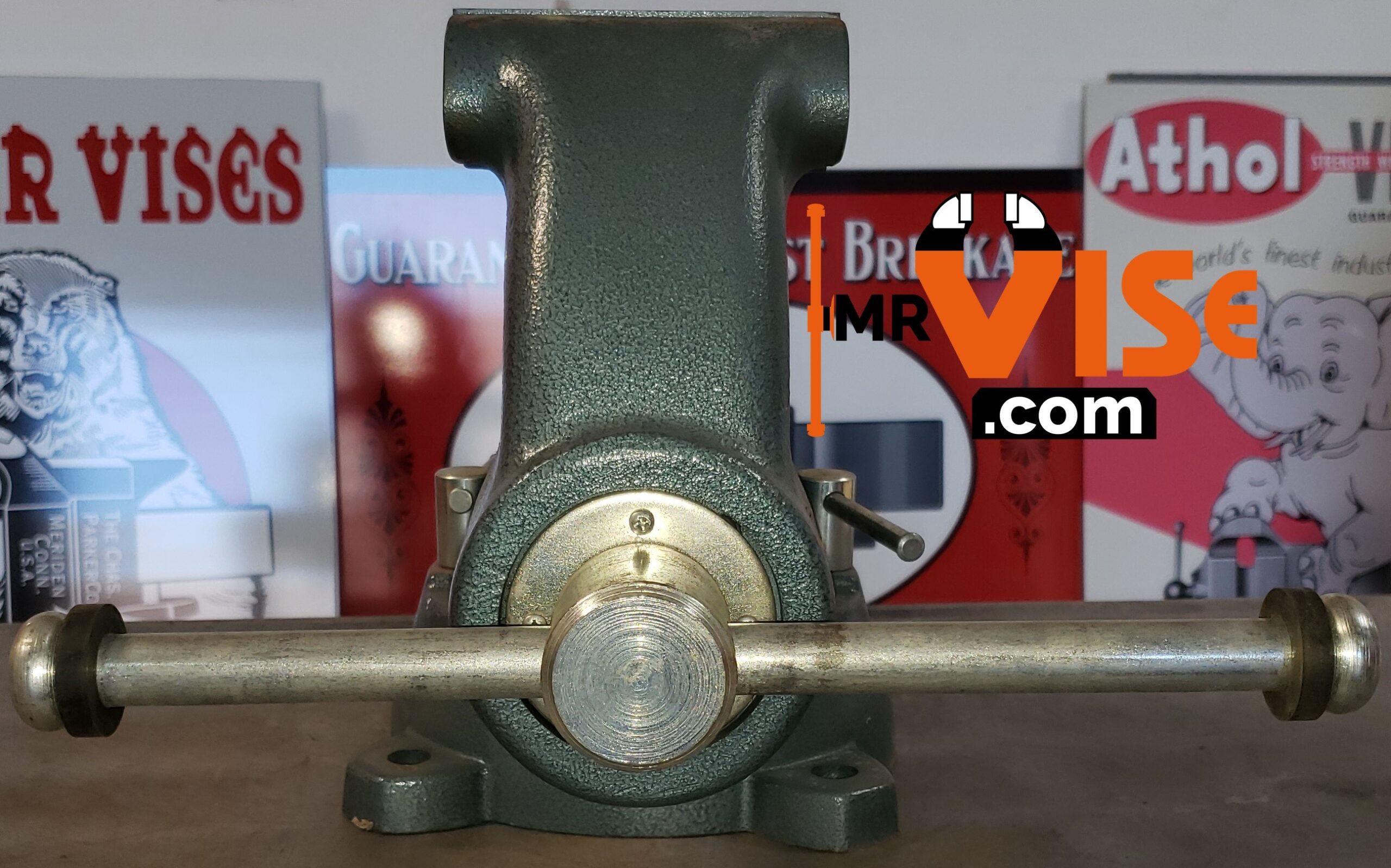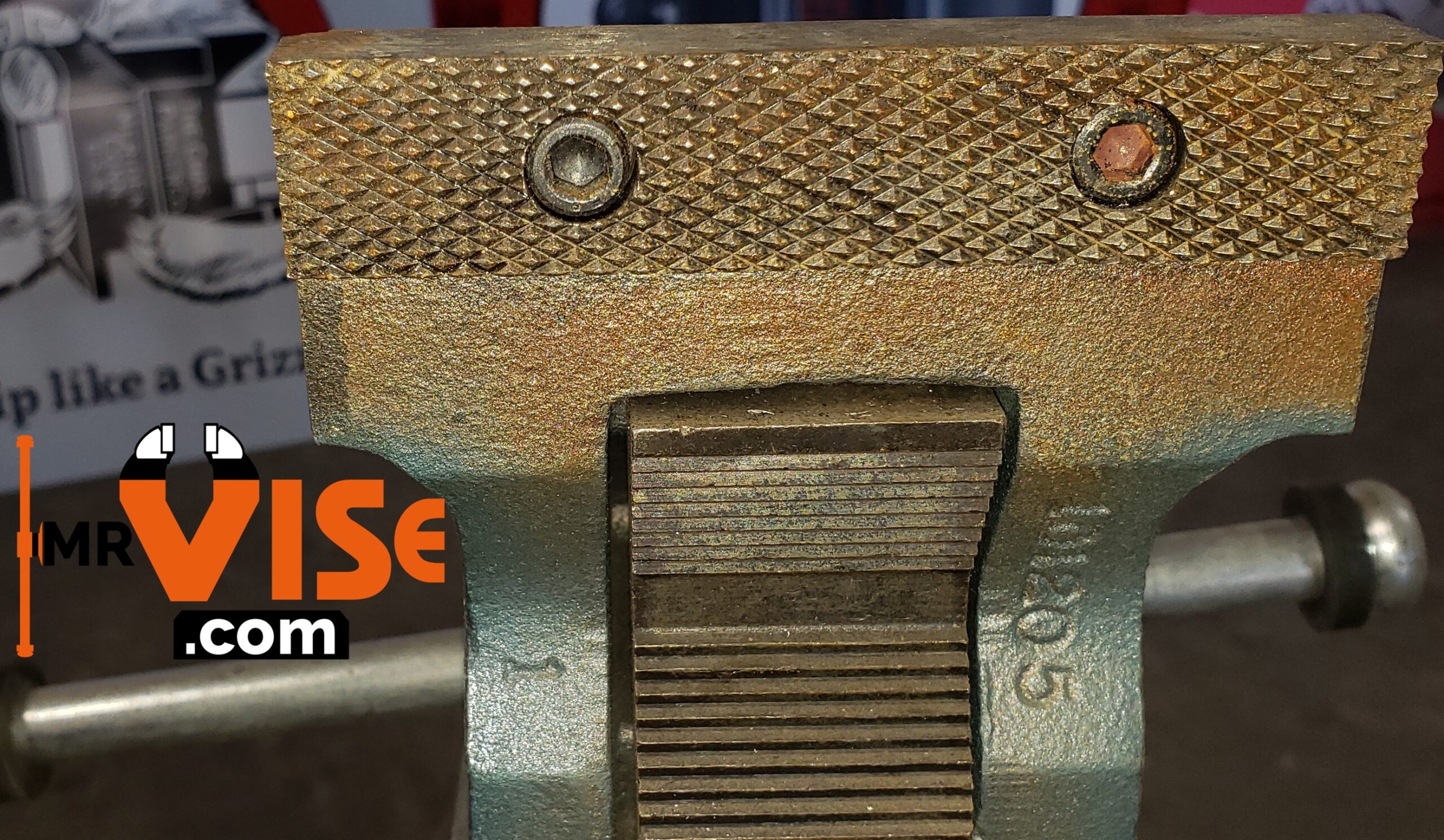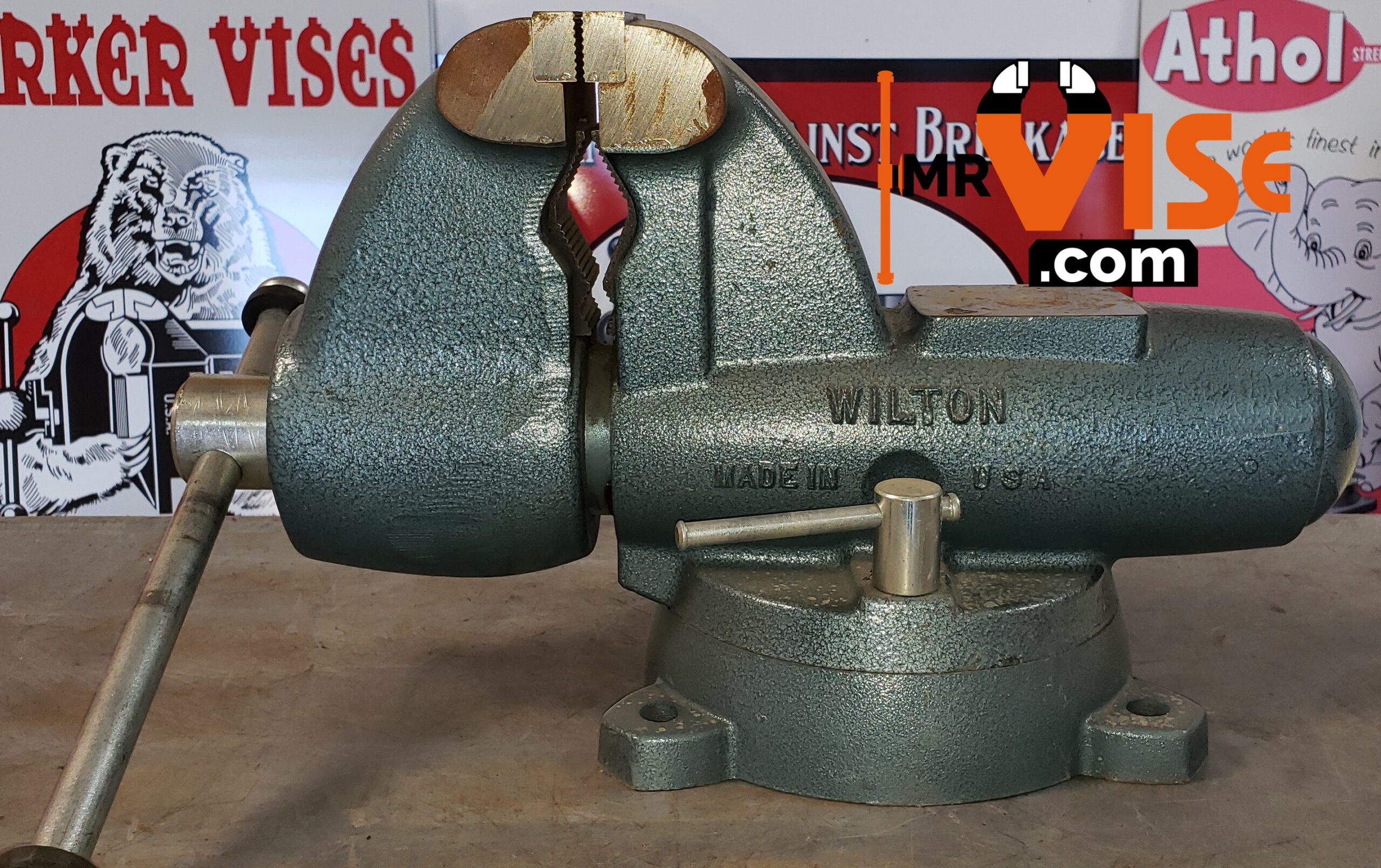 Model number 100523 on the stationary jaw, 1 101205 on the inside of the sliding jaw, and 10108 on the swivel base.